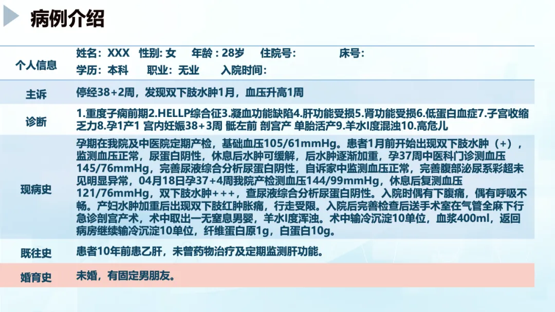>【PPT】一例SPE合并HElIp综合征产妇的个案护理
