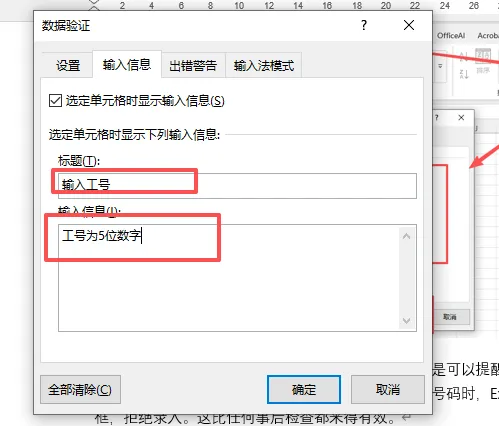 我们可以看到设置后面有输入信息、出错警告,这个是可以提醒输入的伙伴,帮助输入正确的格式,