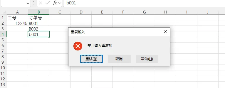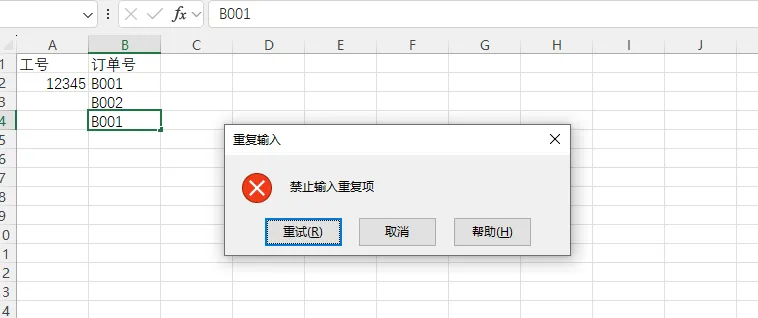玩法二:禁止输入重复项,保持数据唯一性