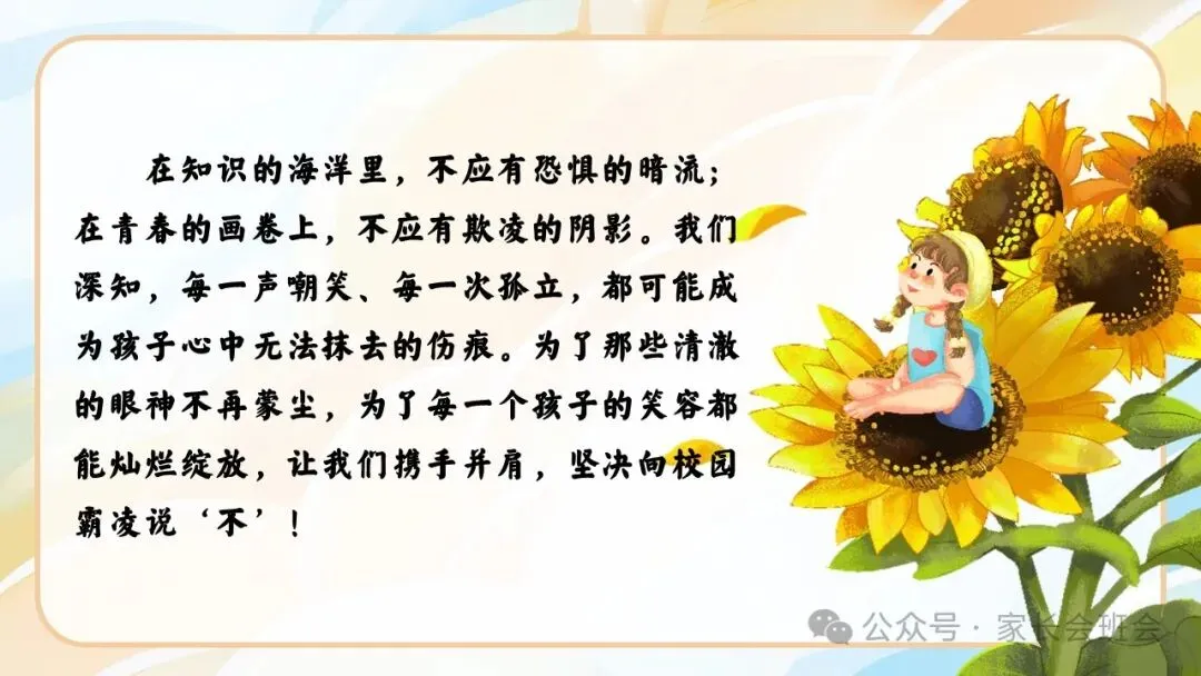 杜绝校园霸凌、欺凌班会ppt:“灿烂笑容”守护行动.含讲稿、视频、保证书