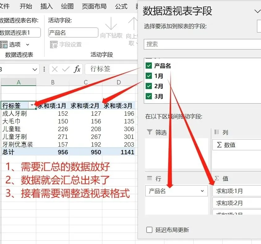 按照列标签进行汇总,适合对比不同时间或地区的表现。比如按月份查看销售趋势,每个月份都有清晰的对比。
