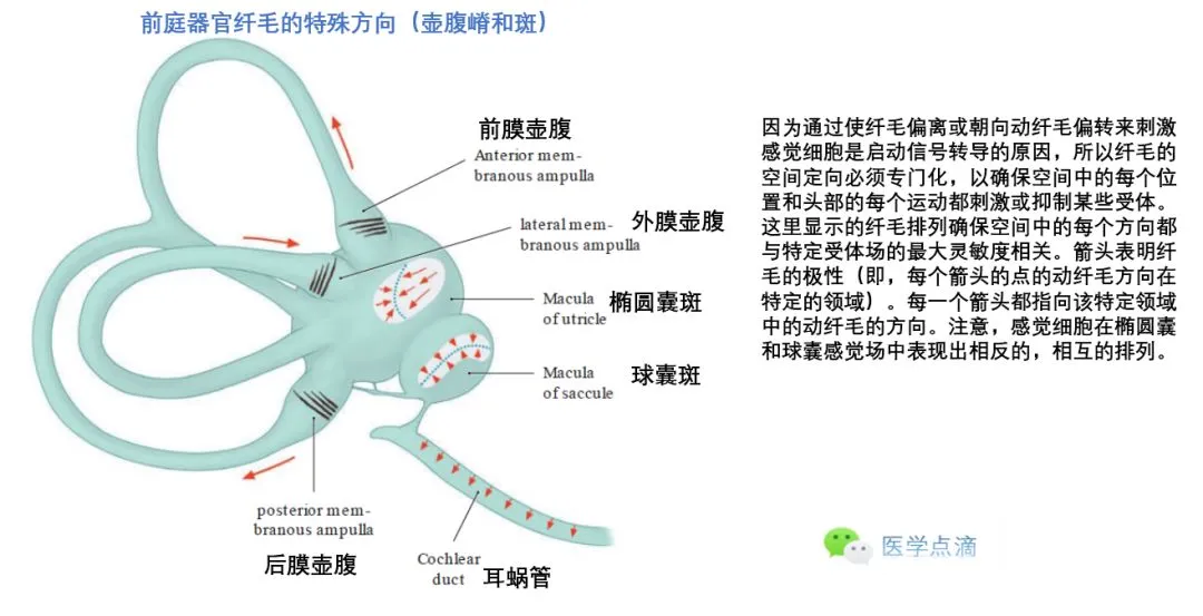 前庭器官纤毛的特殊方向(壶腹嵴和斑)