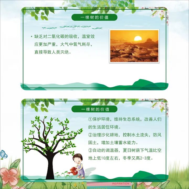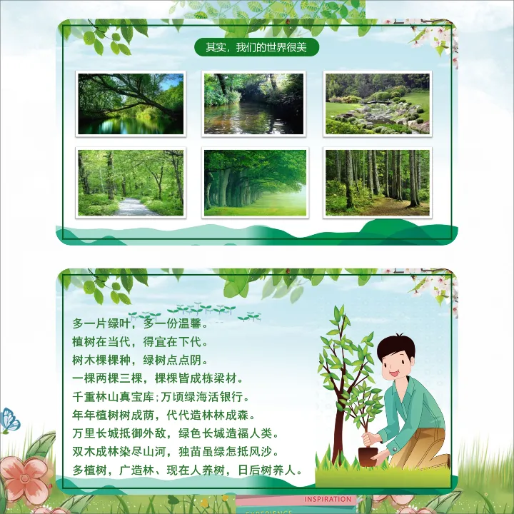 "多一片绿叶,多一份温馨。植树在当代,得宜在下代。"