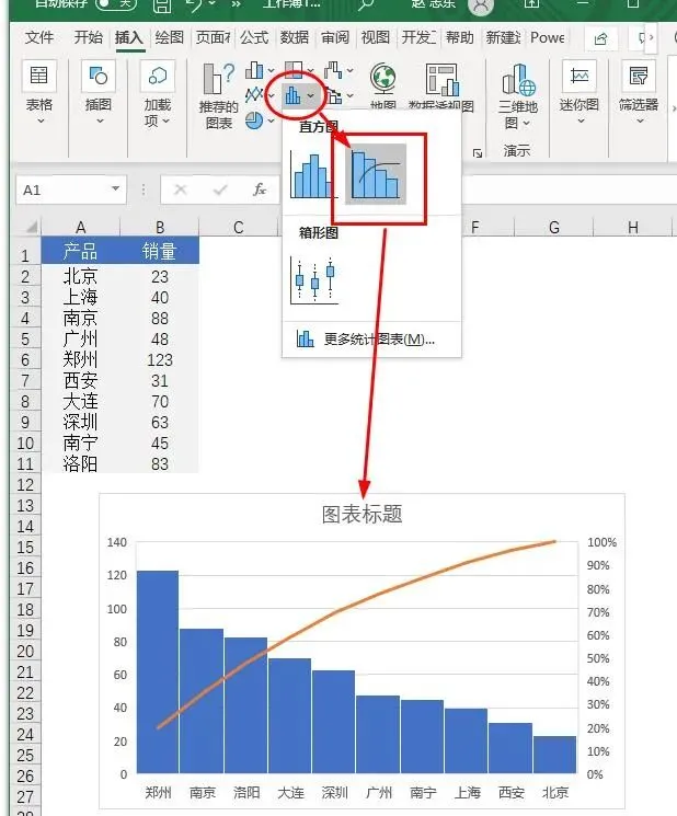 但如何让柱形图自动按数据大小进行排序呢?如下: