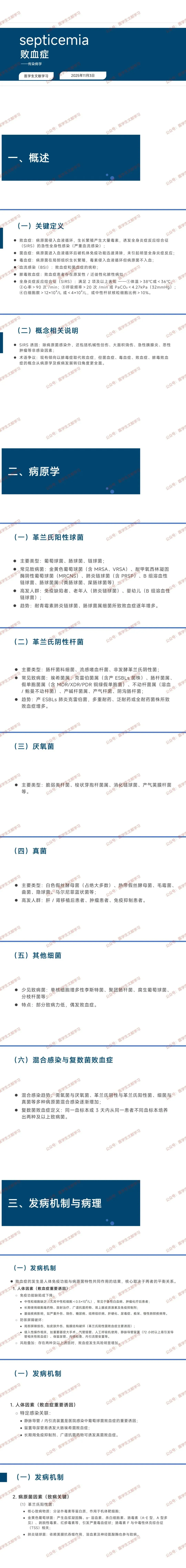 注意:SIRS 可由感染或非感染因素(创伤、烧伤等)引发,目前倾向用 “脓毒症” 表述,但传统术语更贴合病原学与疾病转归。