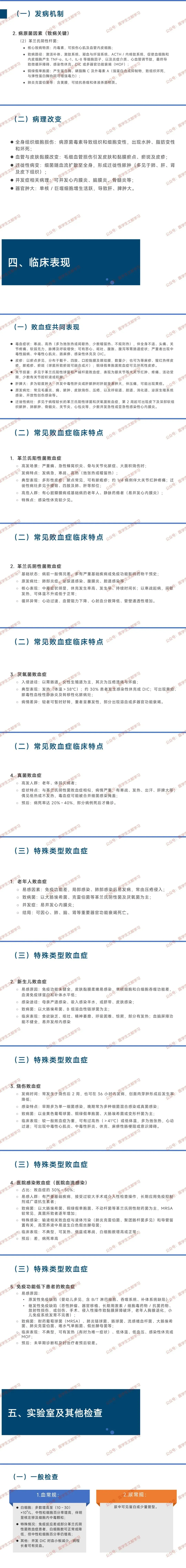 败血症:病原菌入血繁殖产毒,引发 SIRS(满足 2 项及以上:体温>38℃或<36℃、心率>90 次 /min、呼吸>20 次 /min 或 PaCO₂<32mmHg、白细胞异常)。