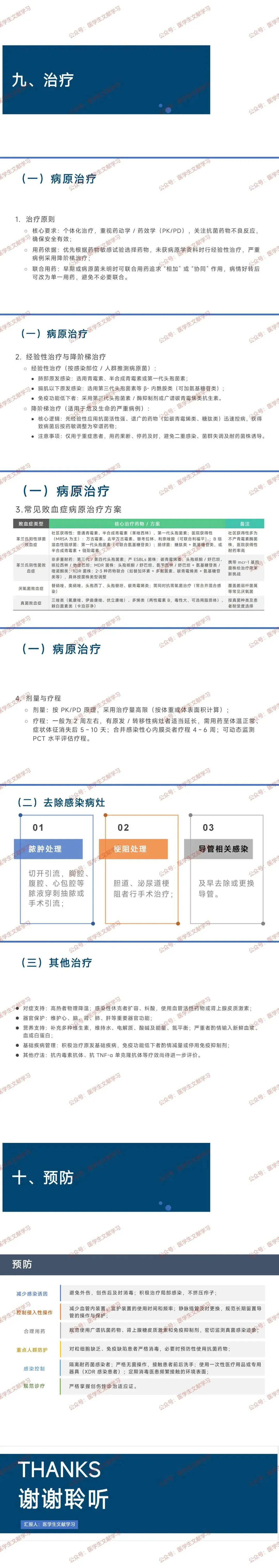 感染控制:严格无菌操作,手卫生,隔离耐药菌感染者,定期消毒环境表面。