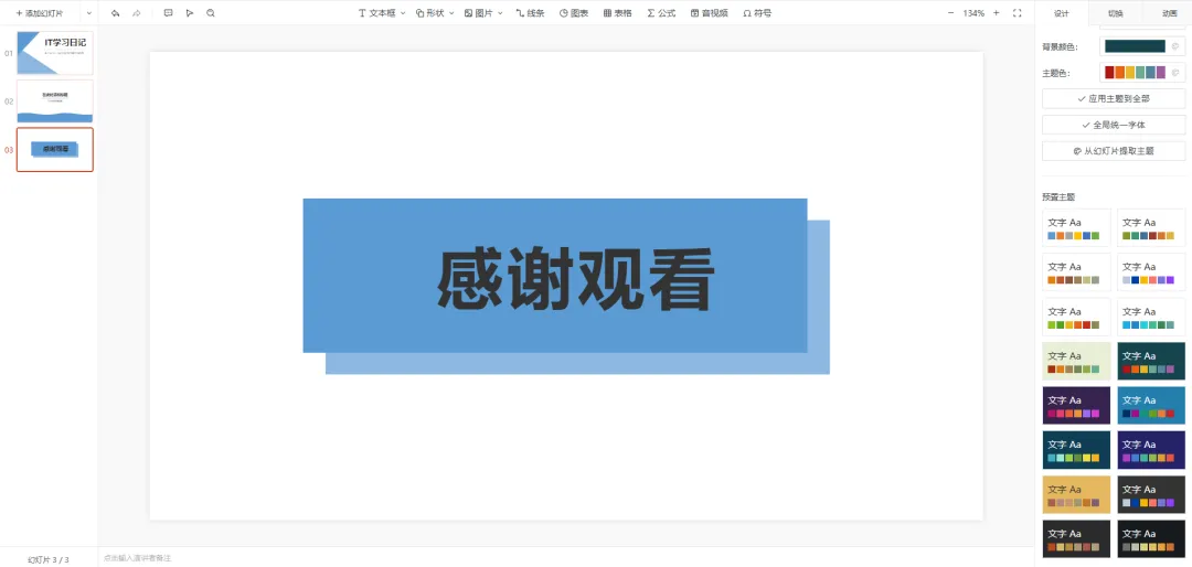 支持沉浸式的全屏演示模式,支持键盘与鼠标控制翻页
