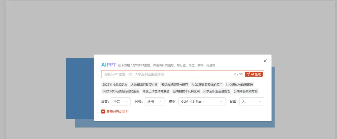 支持AI生成PPT,提升内容生产效率,满足不同场景下用户需要