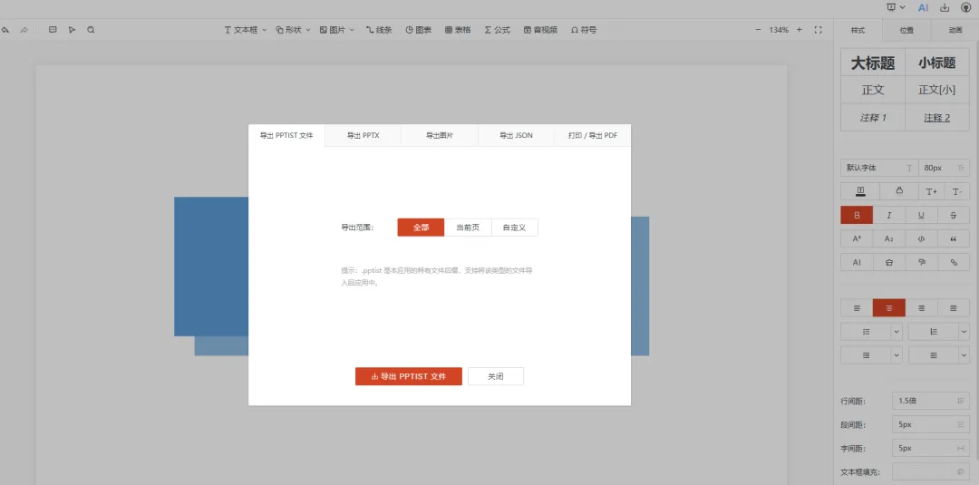 基本还原了Office PowerPoint常用功能,导出的文件可兼容Microsoft PowerPoint