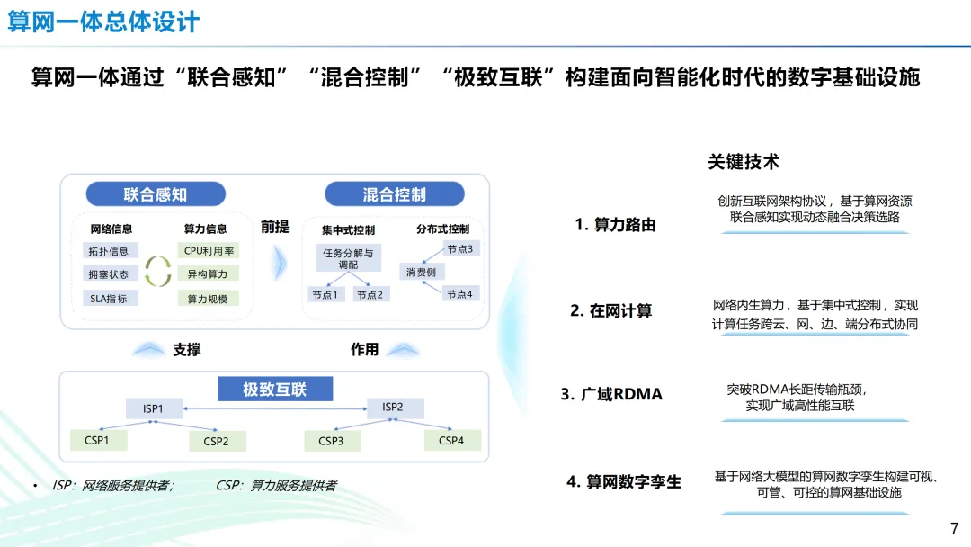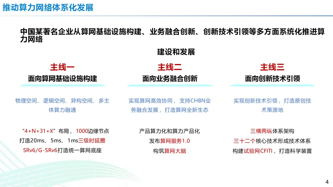 其三,技术迭代突破为算网一体提供了坚实支撑,同时也倒逼技术融合升级。随着全光网络、400G/800G传输、智能无损网络、算网协同编排调度等技术的成熟,打破了传统网络时延高、带宽不灵活的瓶颈,为算力跨区域、低时延调度提供了技术可能。与此同时,传统算网分离模式下,网络时延高、算效折损严重等问题日益凸显,部分场景下算效折损甚至超过60%,亟需通过算网一体技术,实现算力与网络的深度协同,破解技术瓶颈,提升服务质量。