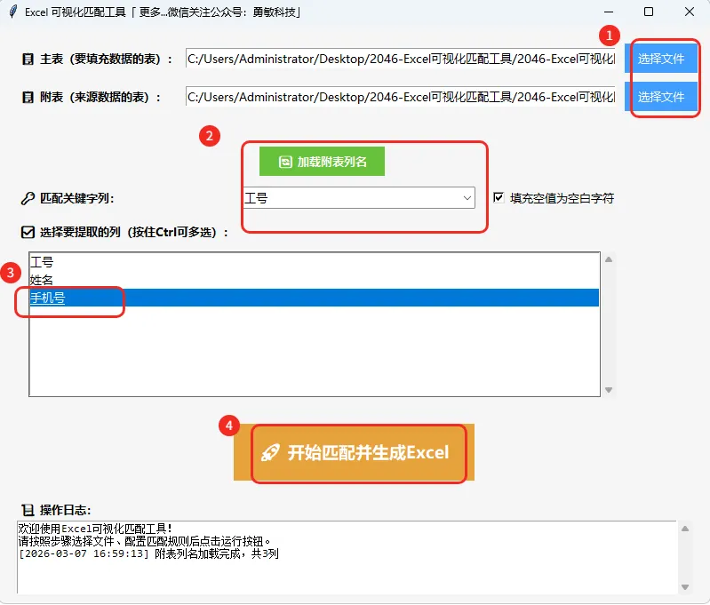 第二步:运行程序(2046-Excel可视化匹配工具)
