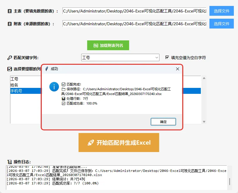 第三步:打开生成后的文件Excel匹配结果_20260307170240.xlsx