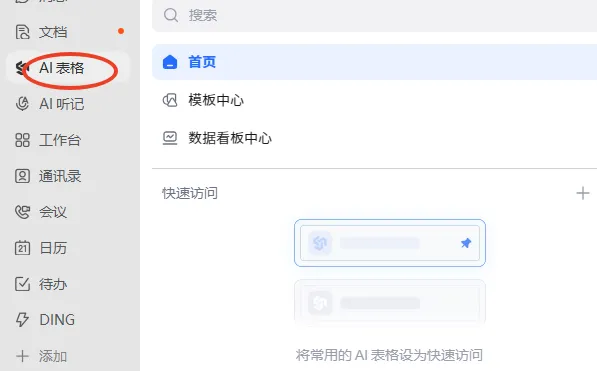 钉钉多维表格/AI表格入口位置