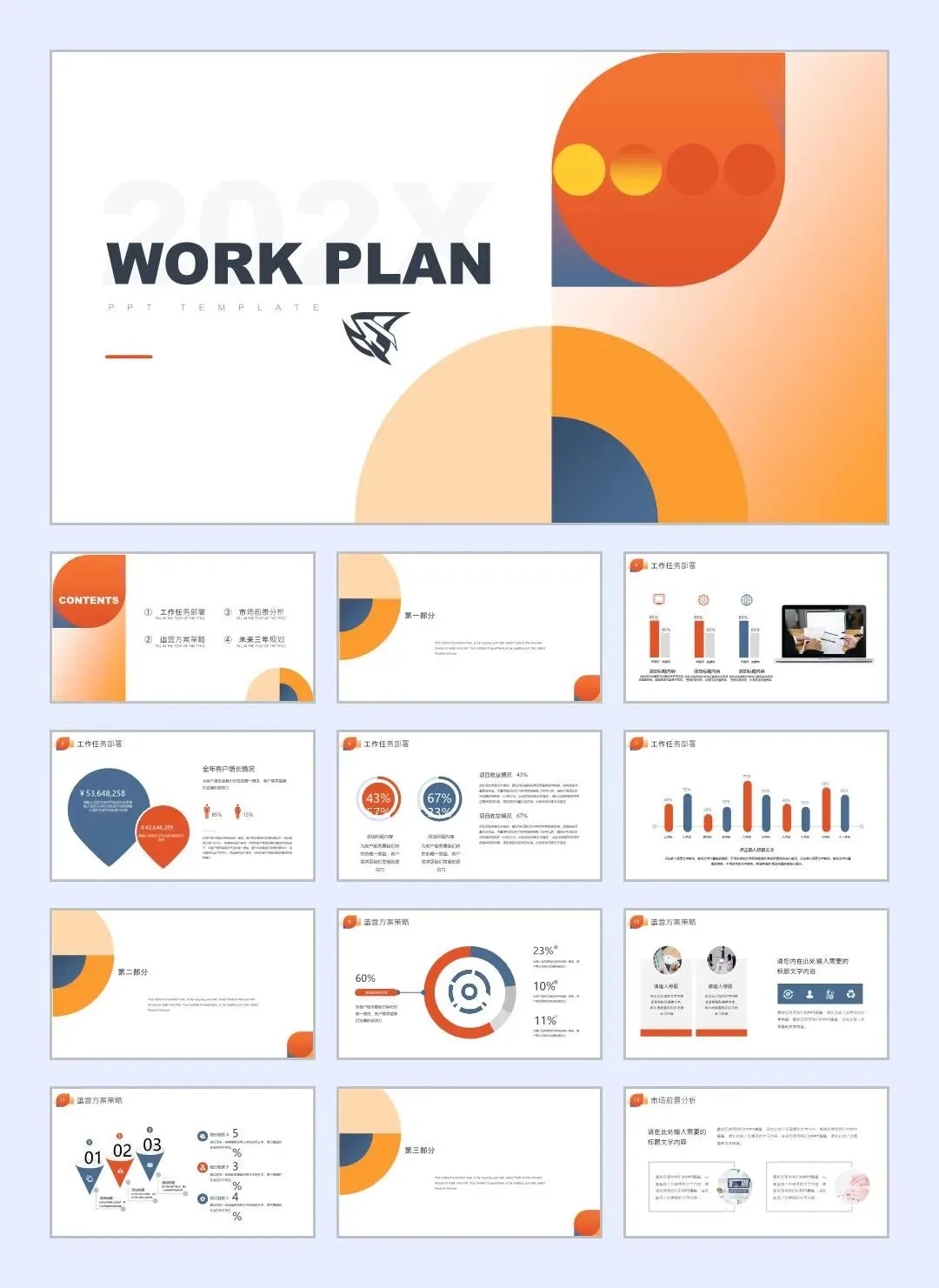 这套欧美高端PPT模板以其独特的设计和多样化的选择,满足了商业报告和演示文稿的多种需求。每个模板都融合了现代感与专业性,通过巧妙运用颜色、形状和布局,呈现出令人瞩目的视觉效果。无论是“工作计划”、“商业计划”还是“年度业务报告”,这套模板都能提供完美的框架和丰富的图形元素,帮助用户快速制作出高质量的幻灯片。