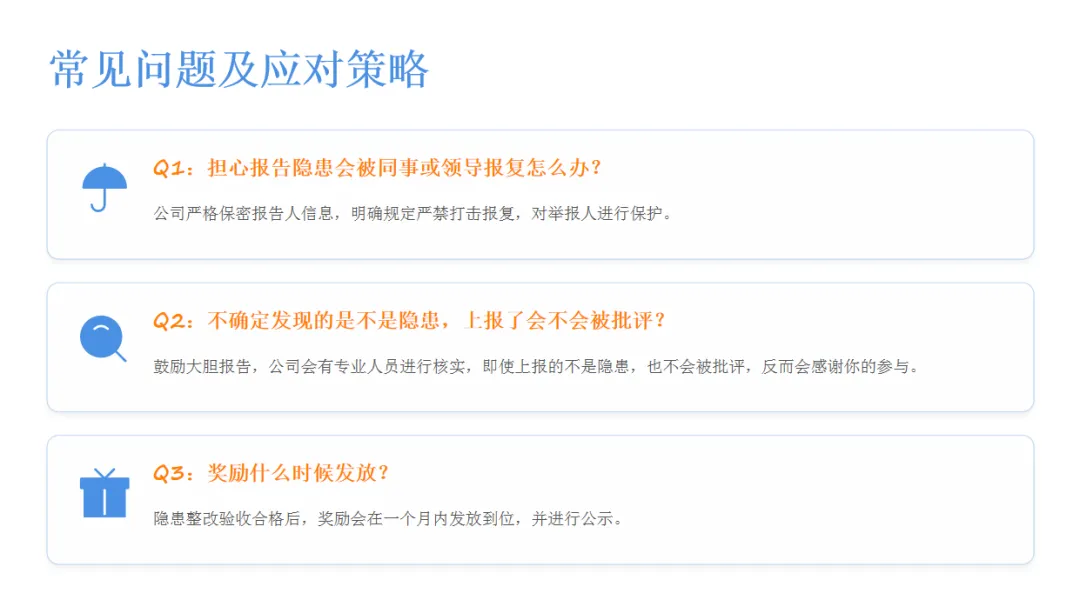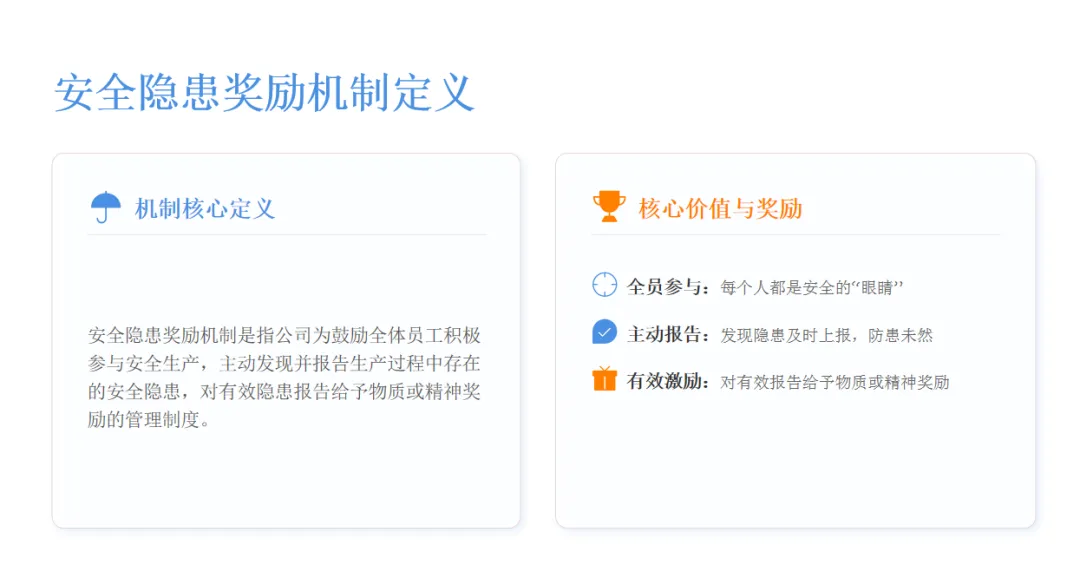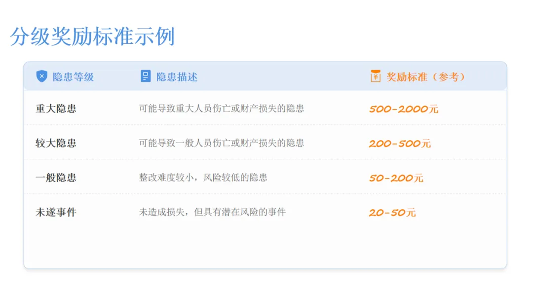 新员工们,欢迎加入安全管理的大家庭!安全隐患奖励机制,是企业保障安全生产的重要举措,也是每位员工参与安全管理的有效途径。