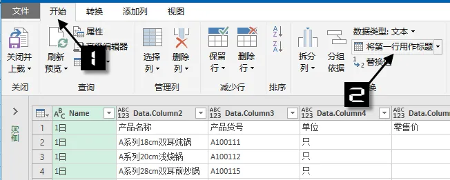 接下来把第一行用作标题: