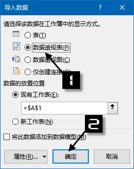 在【导入数据】对话框中选择【数据透视表】: