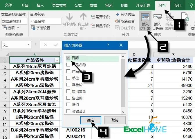 在【分析】选项卡下插入切片器:
