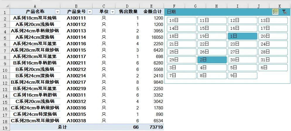 单击切片器中的日期,就可以看到对应的汇总结果: