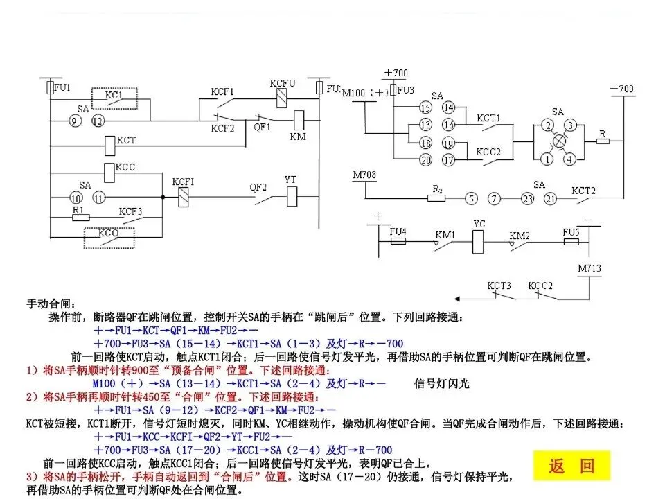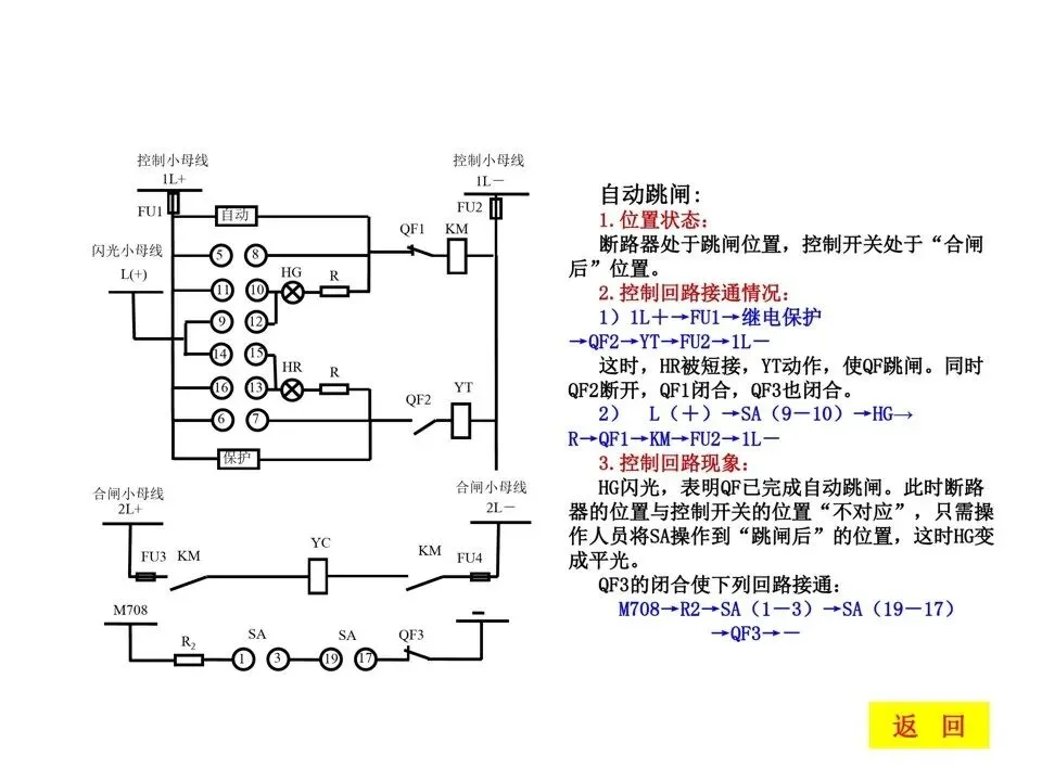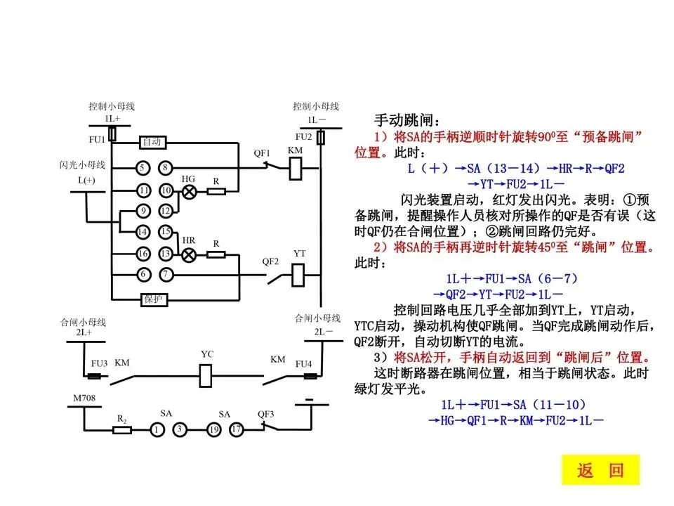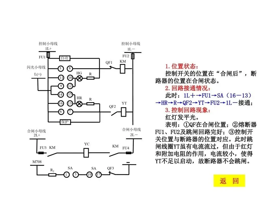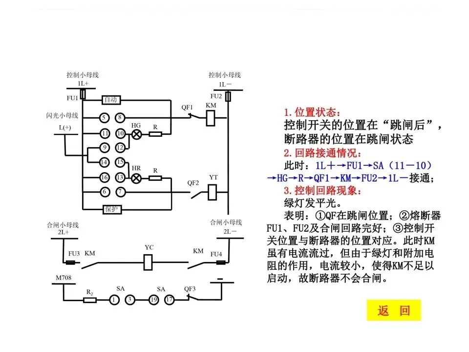 2)手柄在“合闸后”位置,灯发闪光为自动跳闸;3)手柄在“跳闸后”位置,灯发平光为手动跳闸;