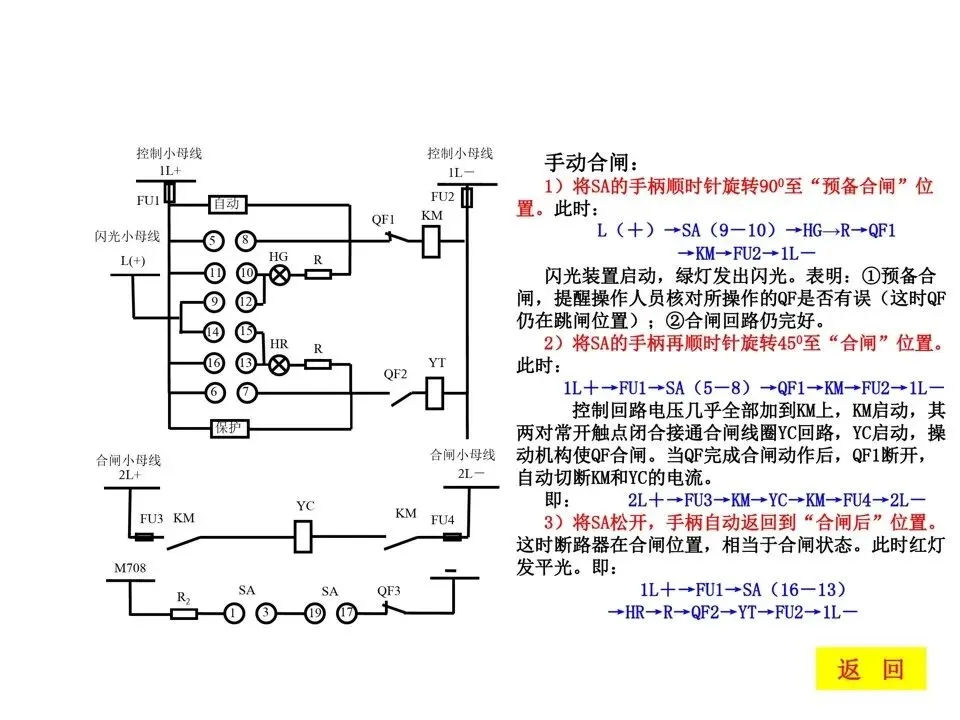 1)手柄在“合闸后”位置,灯发平光为手动合闸;