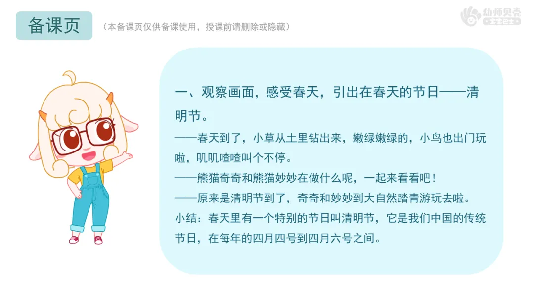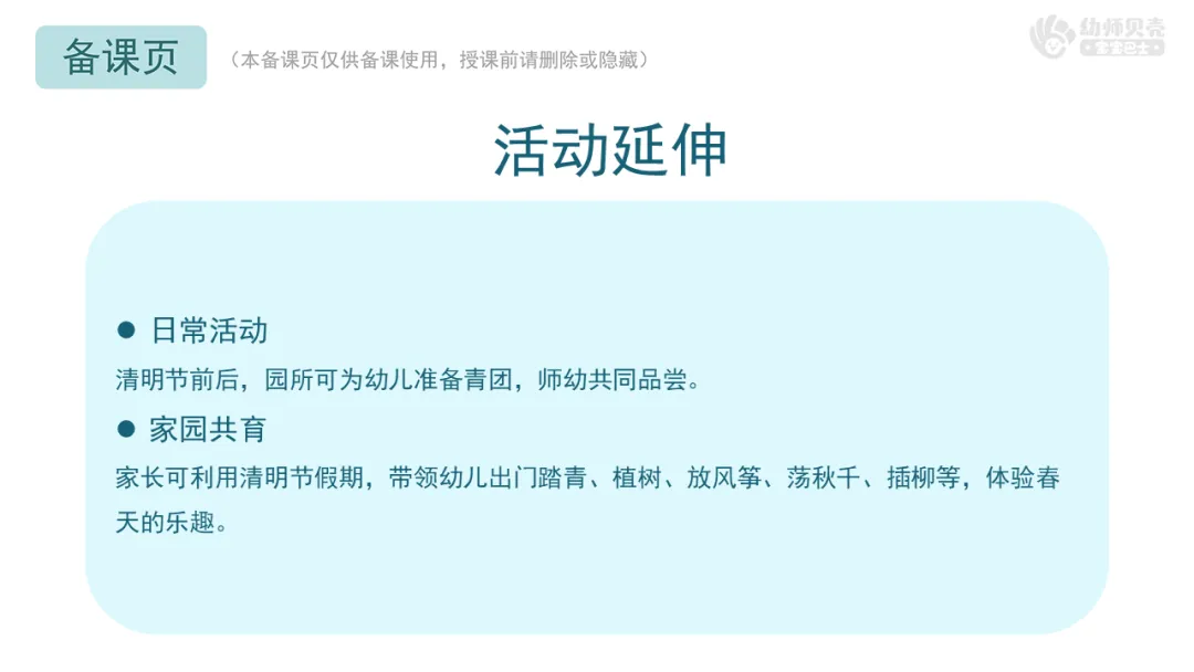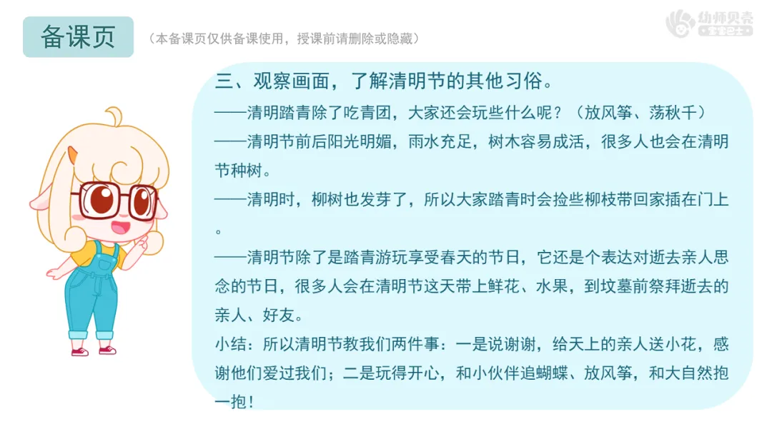 l感受清明节踏青与祭祀两种不同的情绪,激发对传统节日的好奇。