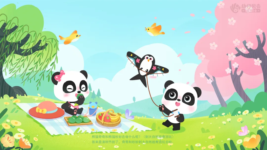 ——原来是清明节到了,奇奇和妙妙到大自然踏青游玩去啦。