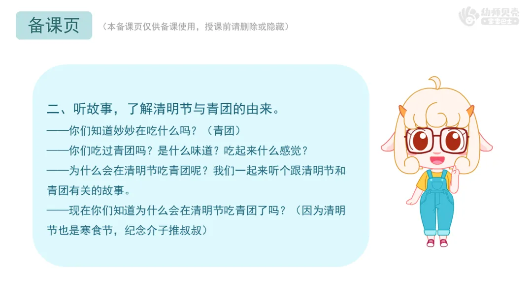 二、听故事,了解清明节与青团的由来。