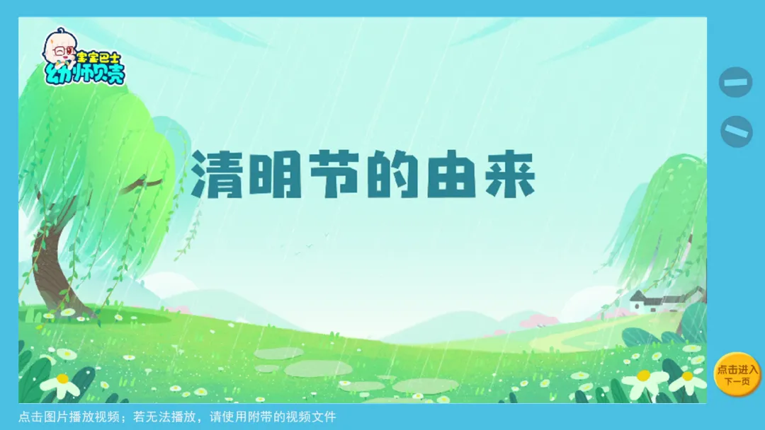 小结:春天里有一个特别的节日叫清明节,它是我们中国的传统节日,在每年的四月四号到四月六号之间。