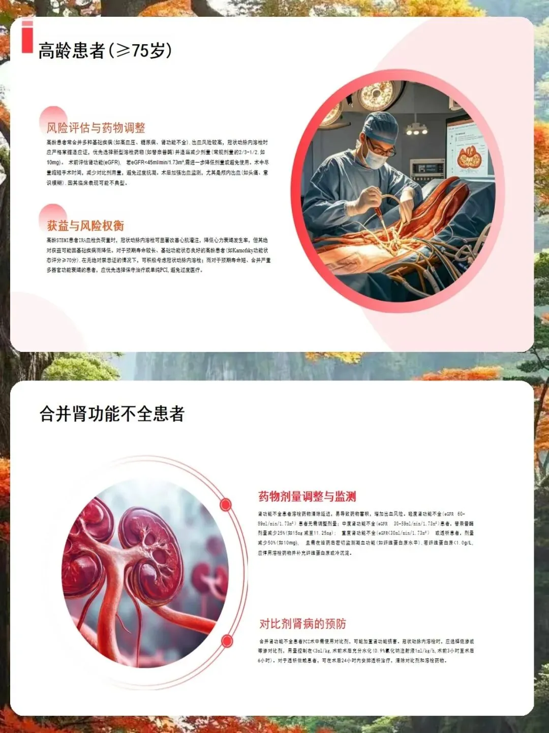 最后,针对特殊人群,我要特别提醒几点。高龄患者要减量,优先选择替奈普酶,并密切监测肾功能。肾功能不全患者,要根据肌酐清除率调整剂量,重度不全者剂量减半。糖尿病患者血栓负荷重,可能需要联合使用GPⅡb/Ⅲa受体拮抗剂。而对于心原性休克患者,在IABP或ECMO支持下,可以适当积极一些,争取尽快恢复血流。