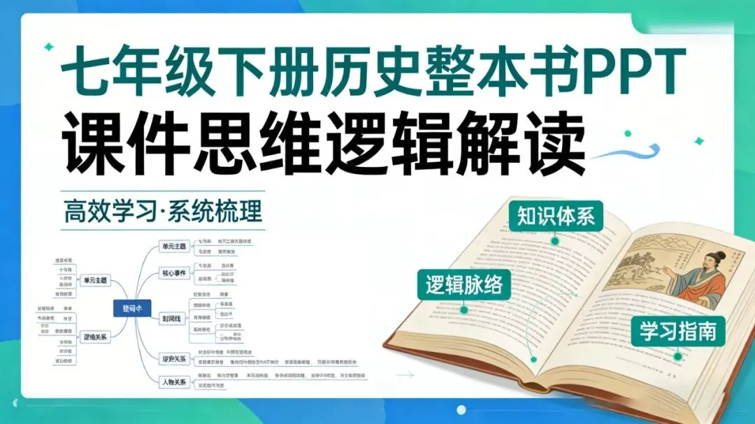适配“大单元视角+任务驱动”教学,可直接复制到PPT,每课建议3-5页,突出核心问题与逻辑结构。七年级下册历史 整本书PPT课件逻辑解读