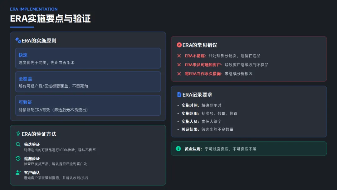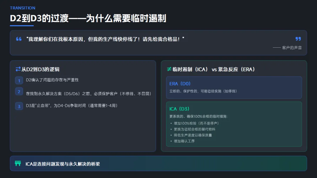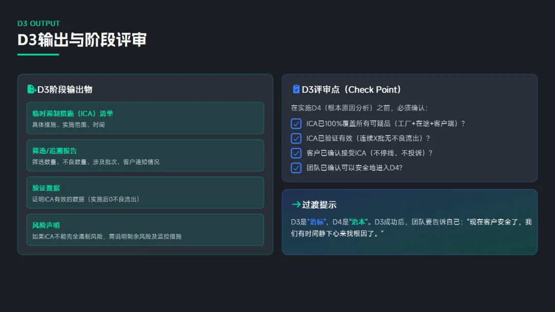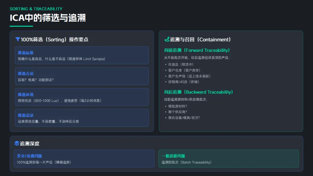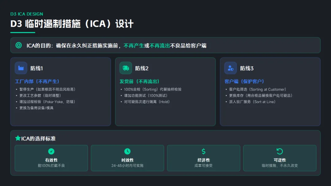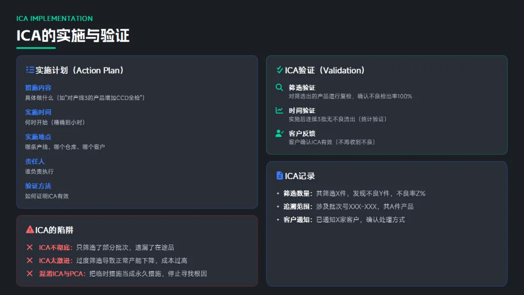——实施临时遏制措施(ICA),包括筛选和追溯。目标是保护客户不停线,为后续分析争取时间。