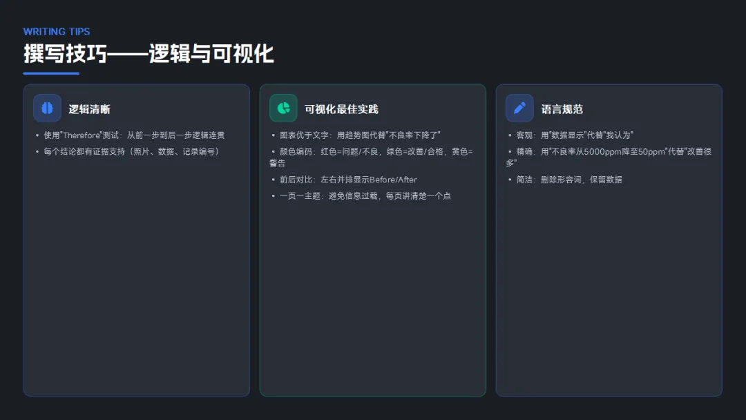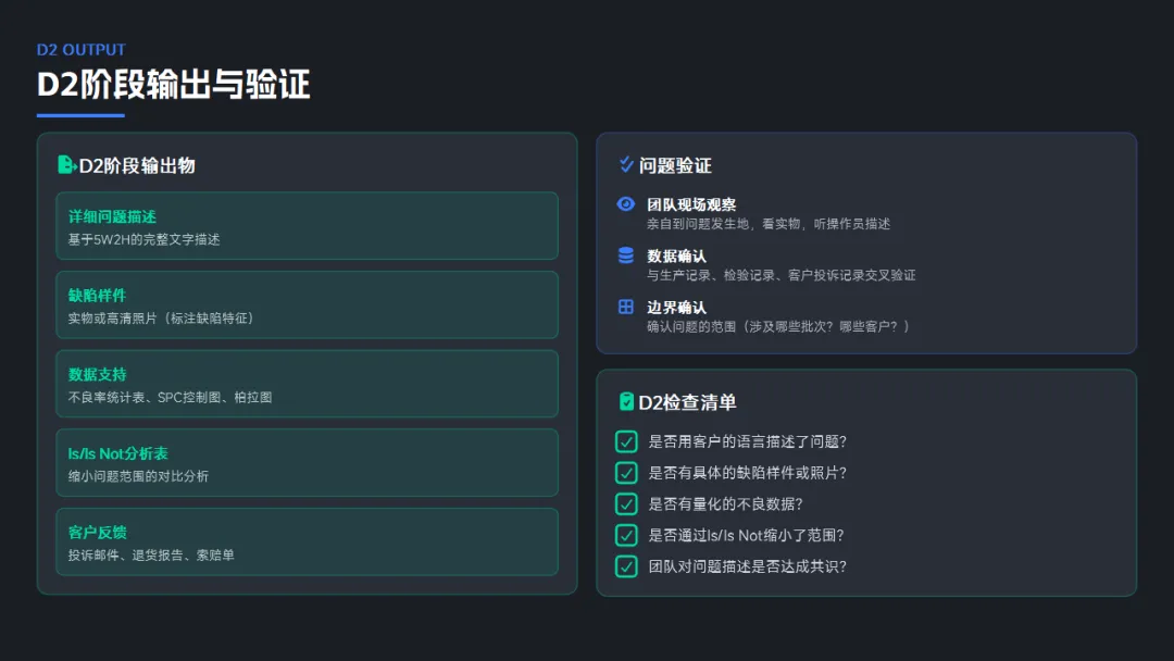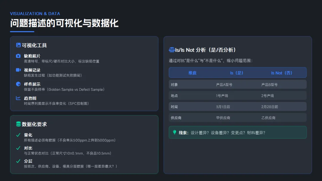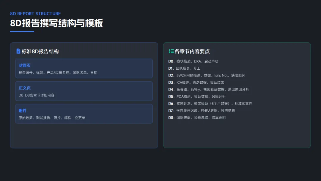 8D要求基于事实与数据做出决策,而非感觉与猜测。每一个结论都必须有证据支撑:照片、记录、测试报告、统计数据。这种数据驱动的文化是现代质量管理的基石。