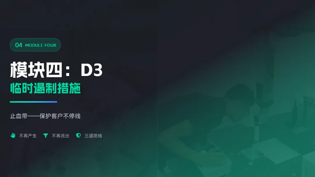 ——症状描述加上紧急反应措施(ERA)。这一步的目标是在24小时内止血,防止问题扩大,保护客户。