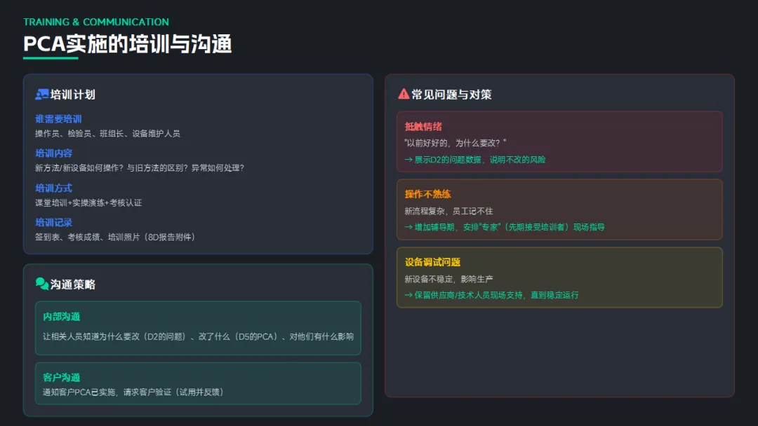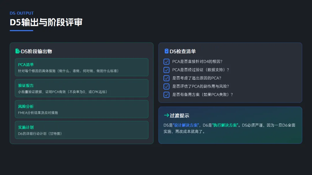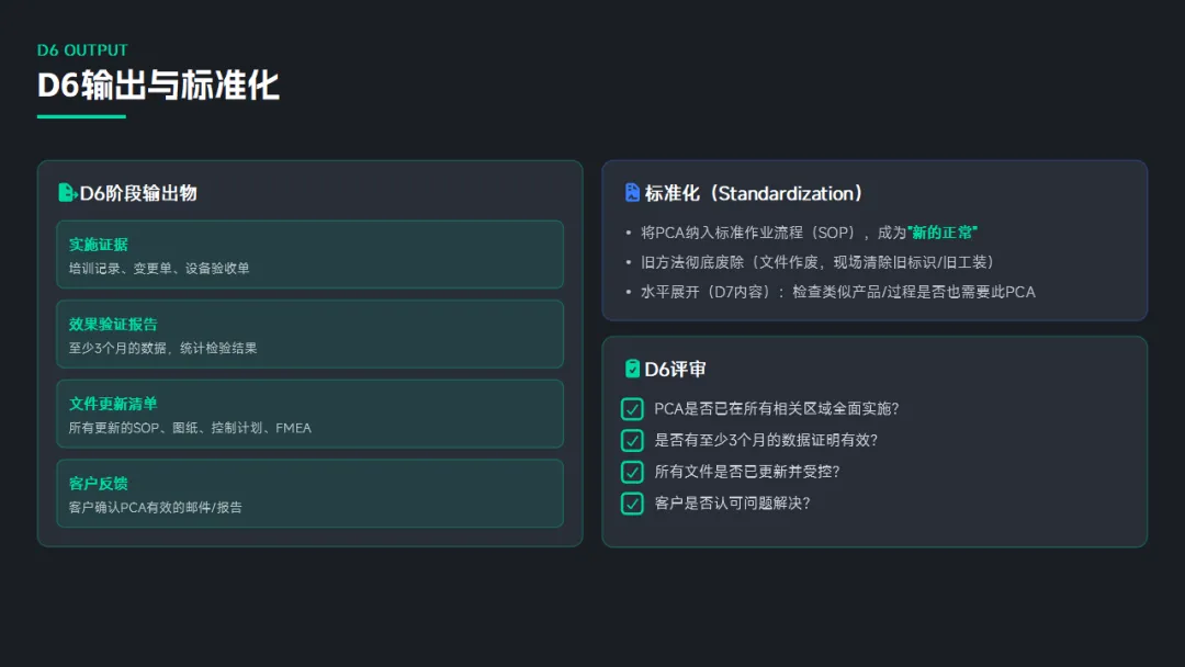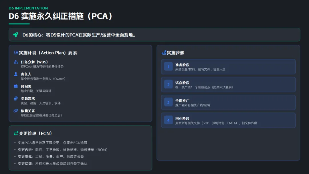 对应D6:实施永久纠正措施。这是将计划落地的阶段。