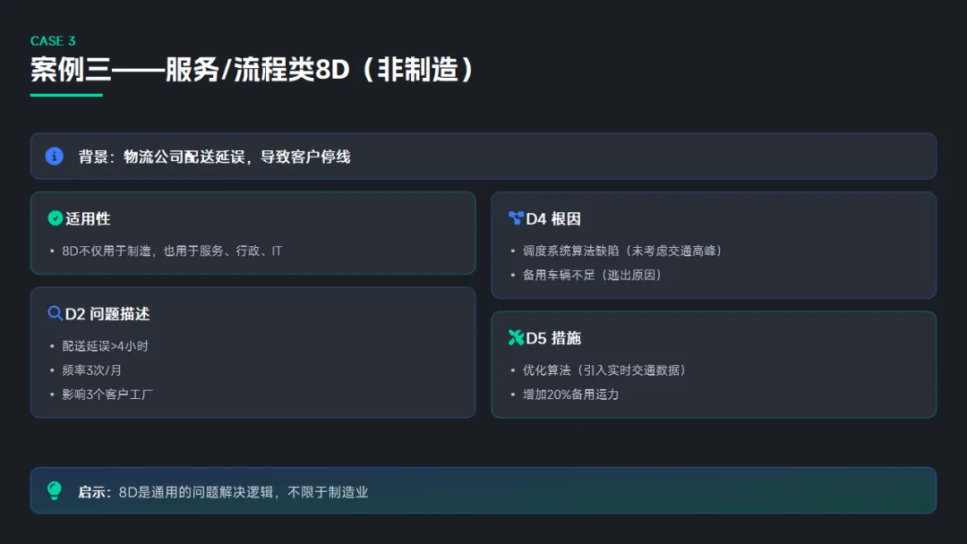 。如果在3个月内同一问题发生3次或以上,说明之前的纠正措施无效,必须用8D进行深度分析。