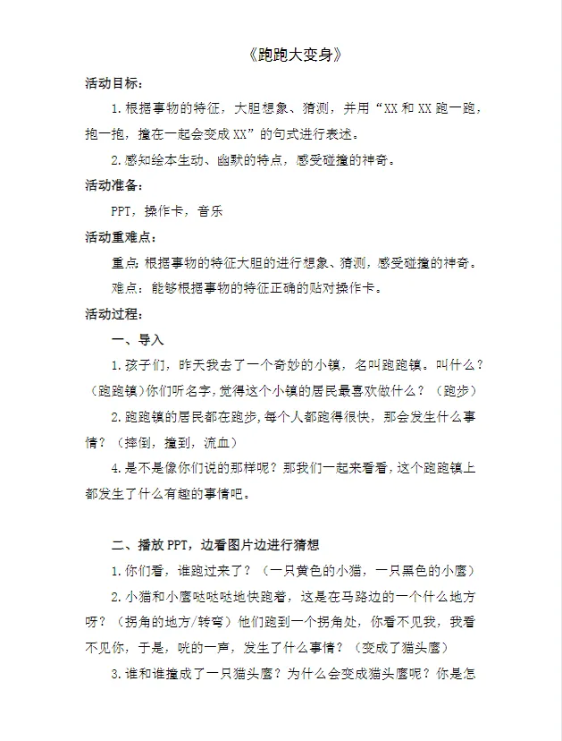 幼儿园小班_语言_《跑跑大变身》PPT+教案