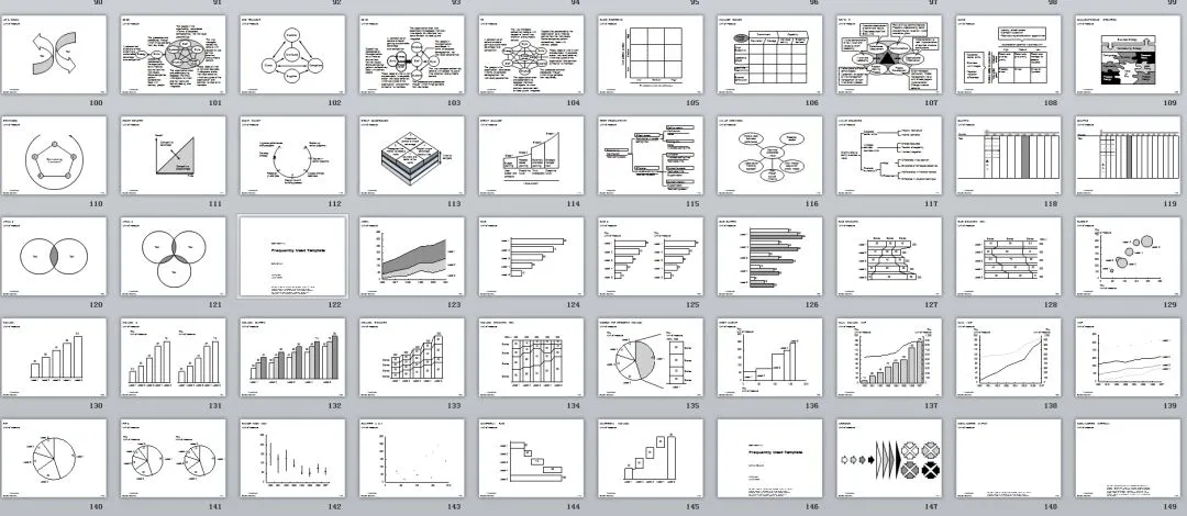 这套麦肯锡的的PPT模板在网上就能找到,一共306页,包含了众多基础却经典的咨询公司思维方法。有兴趣的同学可以百度搜索关键字“麦肯锡PPT模板”,记得找306页黑白版的。