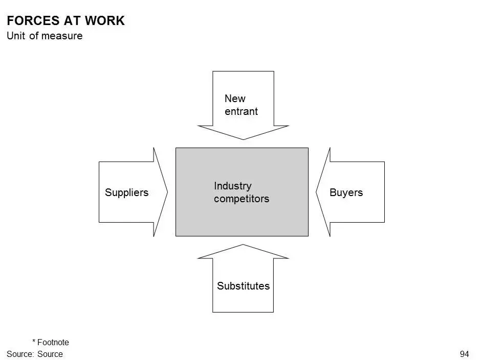 波特5力模型在分析企业的竞争力量时,将它们总结为五个方面:行业现有的竞争状况、供应商的议价能力、客户的议价能力、替代产品或服务的威胁、新进入者的威胁。这5个力量,决定了一个企业的盈利能力。