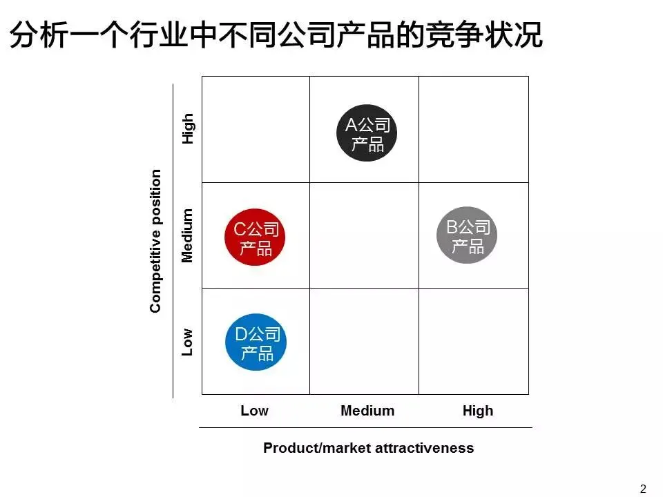 例如在上文麦肯锡的PPT模板中,将“产品吸引力”和“市场竞争定位”作为描绘产品在市场上的受欢迎程度,这是一个比较准确的做法。