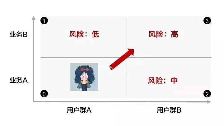 我按照“业务类型”和“用户群体”两个维度来构建坐标系,然后进行阐释说明(如下图):