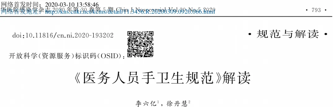 原国家卫生部于2009年颁布了我国第一版《医务人员手卫生规范》(以下简称2009版《规范》)(WS/T.313-2009),2009版《规范》的颁布与实施,对推进我国医疗机构医务人员手卫生起到了非常积极的促进作用。随着医院感染防控工作的发展,国家卫生健康标准委员会医院感染控制标准专业委员会组织专家对2009版《规范》进行了修订(以下简称2019版《规范》),并于2019年11月26日颁布,2020年6月1日实施。为使医疗机构管理者及医务人员更好地了解2019版《规范》修订的关键内容,推动2019版《规范》的落实和手卫生工作的进一步提升,本文就2019版《规范》的修订要点阐述如下。