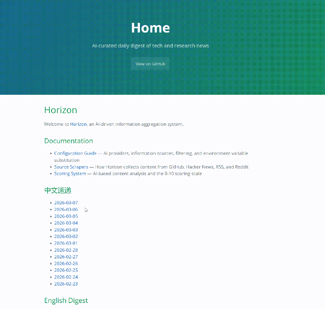 - 1. Horizon → AI新闻聚合,每天自动生成精选简报