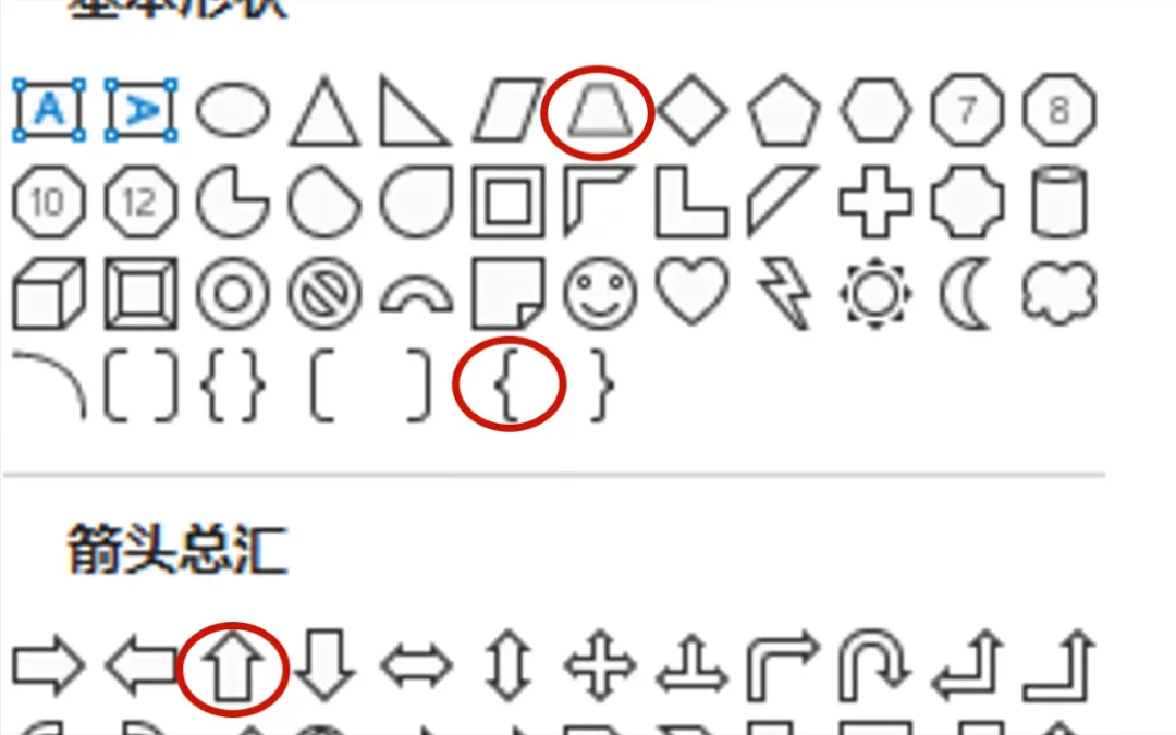 矩形、圆形相信你经常会用到,今天教你 3 个不一样的形状:梯形、大括号、箭头↓