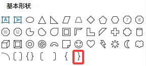 在【基本形状】中找到右大括号: