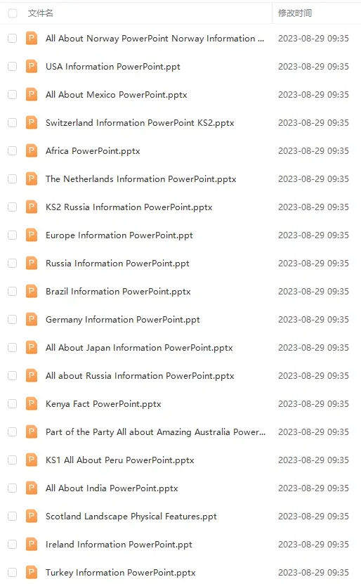 这些PPT覆盖了亚洲、欧洲、美洲和大洋洲等各大洲的国家。