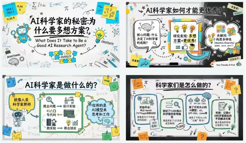 视觉上是教授手写 + 拼贴画 + 白板的混合感,有一种"用心讲课"的温度在里面。