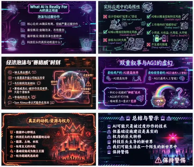 适合场景: 创意提案、品牌故事、科技主题演讲。手写线条 + 赛博朋克配色,说不清楚但就是很酷,适合那种"我想要一点点叛逆感"的场合。