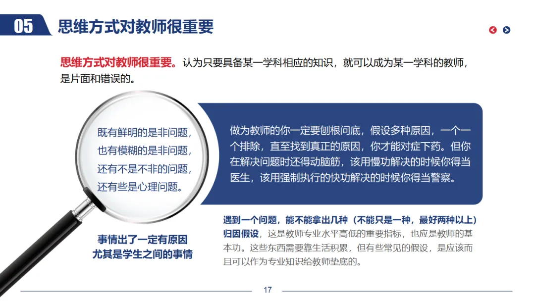 新老师入职培训ppt:为新老师指明方向/新师启航:入职培训明方向,ppt课件共34页(无水印可编辑ppt课件,下载方式见文末)五、思维方式对教师很重要